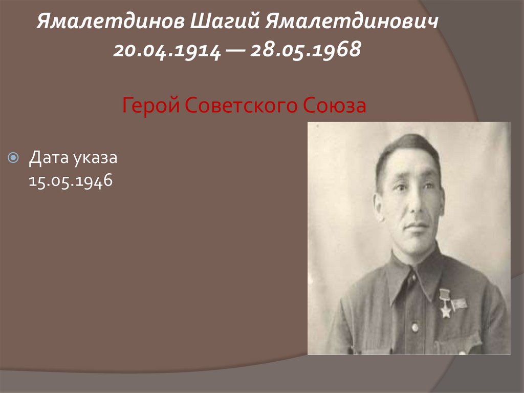 Ямалетдинов Шагий Ямалетдинович20.04.1914 — 28.05.1968