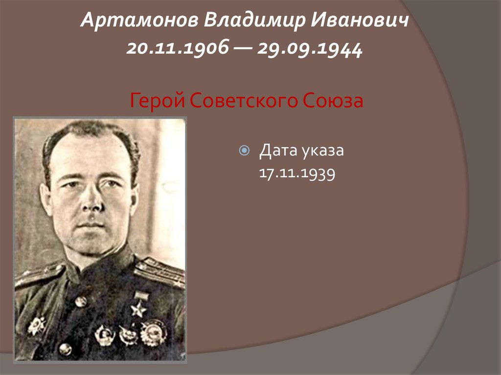 Артамонов Владимир Иванович20.11.1906 — 29.09.1944