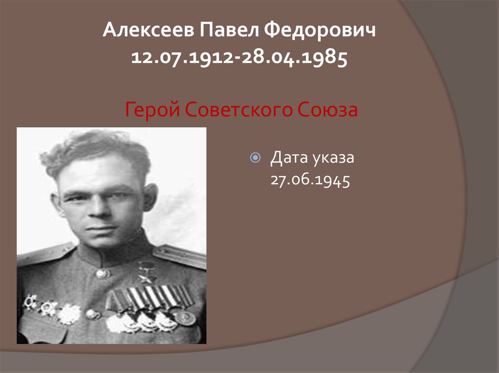 Алексеев Павел Федорович12.07.1912-28.04.1985