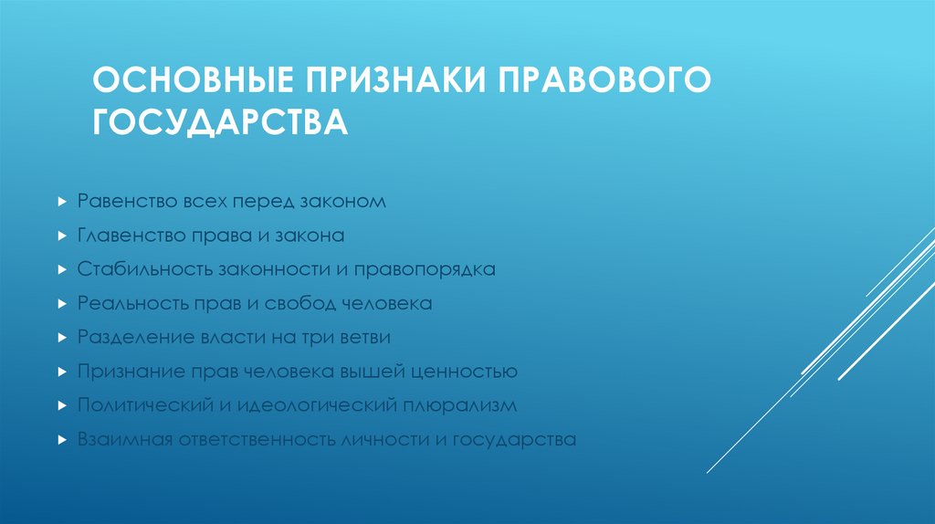 ОСНОВНЫЕ ПРИЗНАКИ ПРАВОВОГОГОСУДАРСТВА