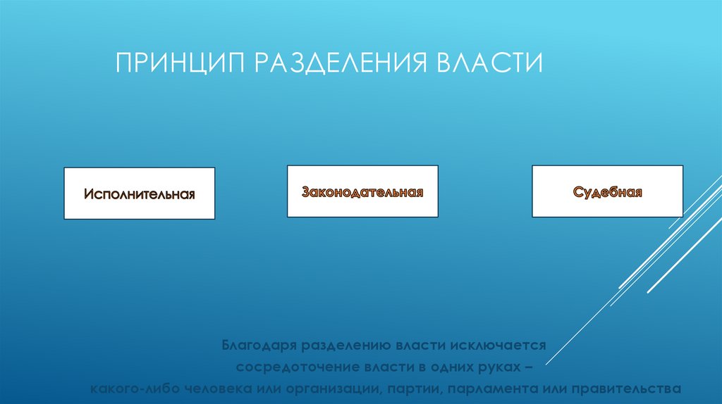ПРИНЦИП РАЗДЕЛЕНИЯ ВЛАСТИБлагодаря разделению власти исключается