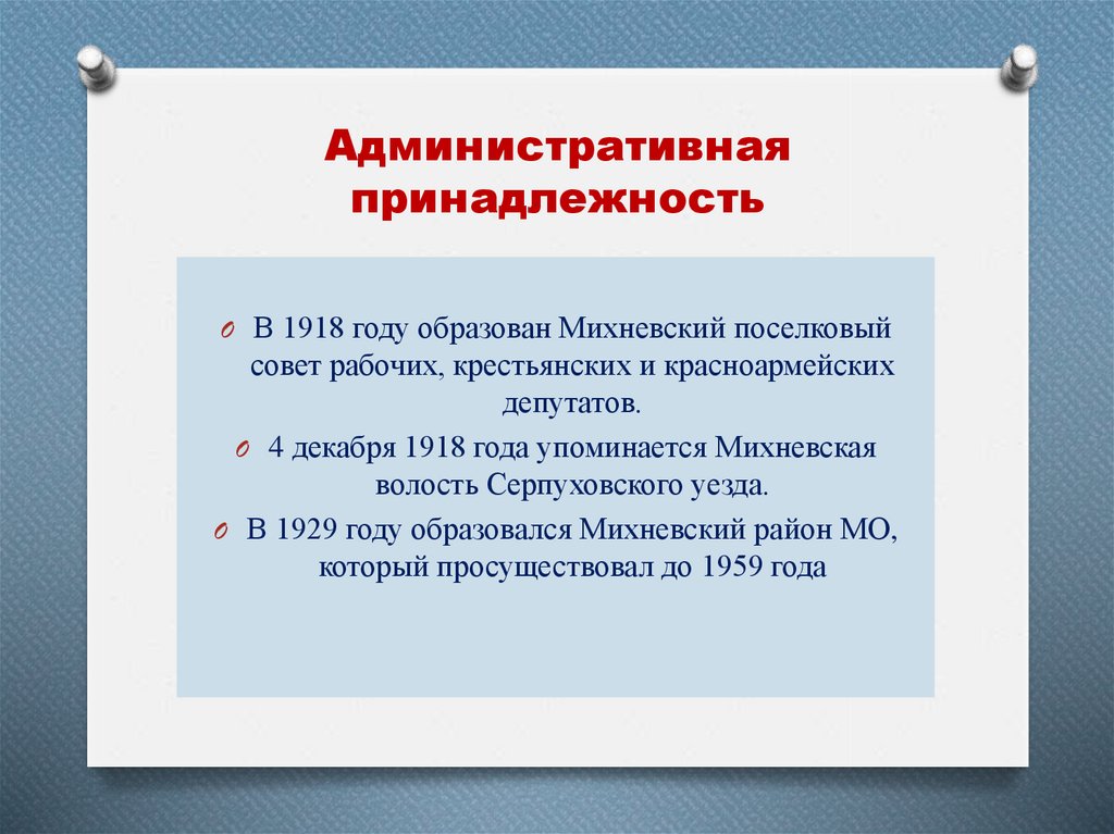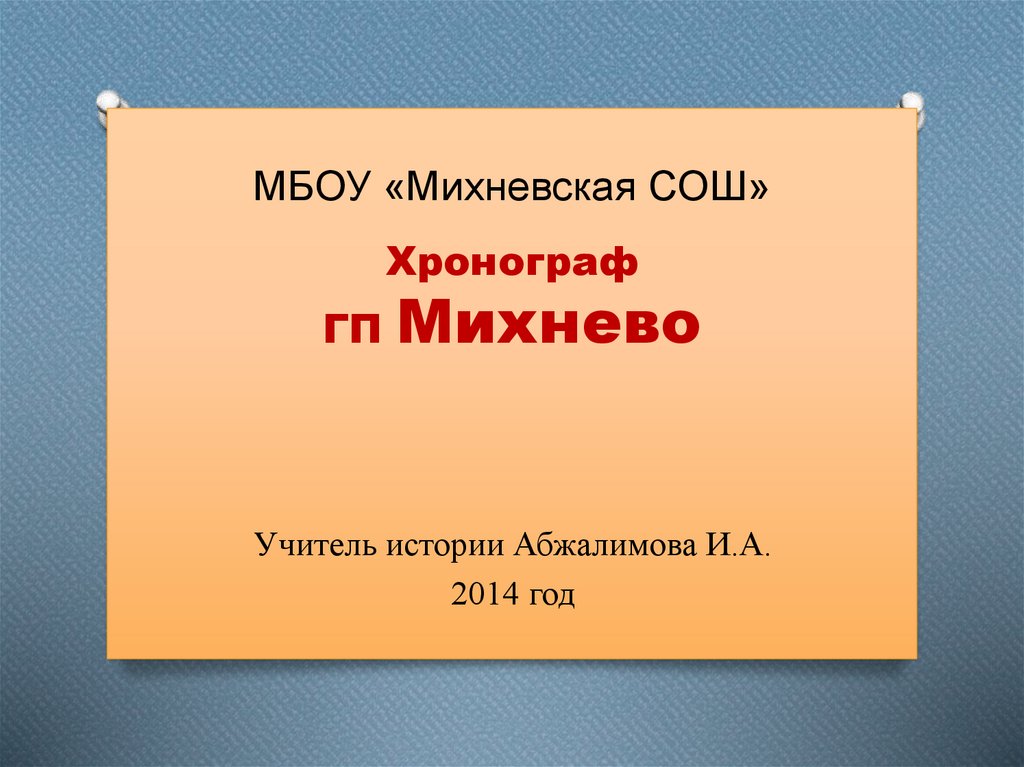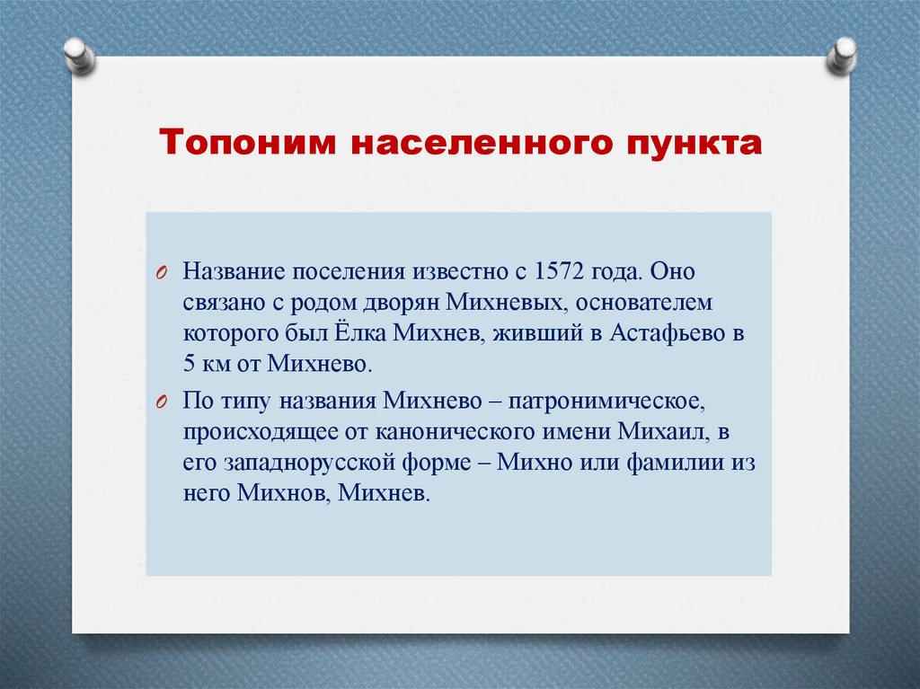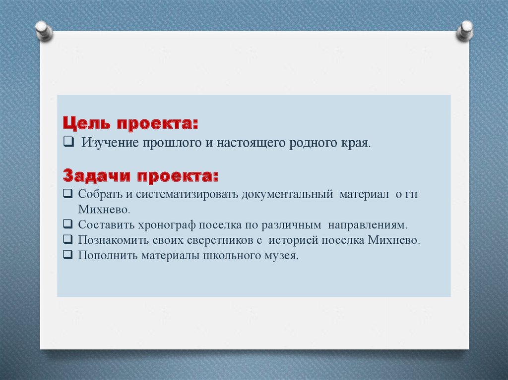 Гипотеза проекта:O Вероятно, возникновение поселка Михнево