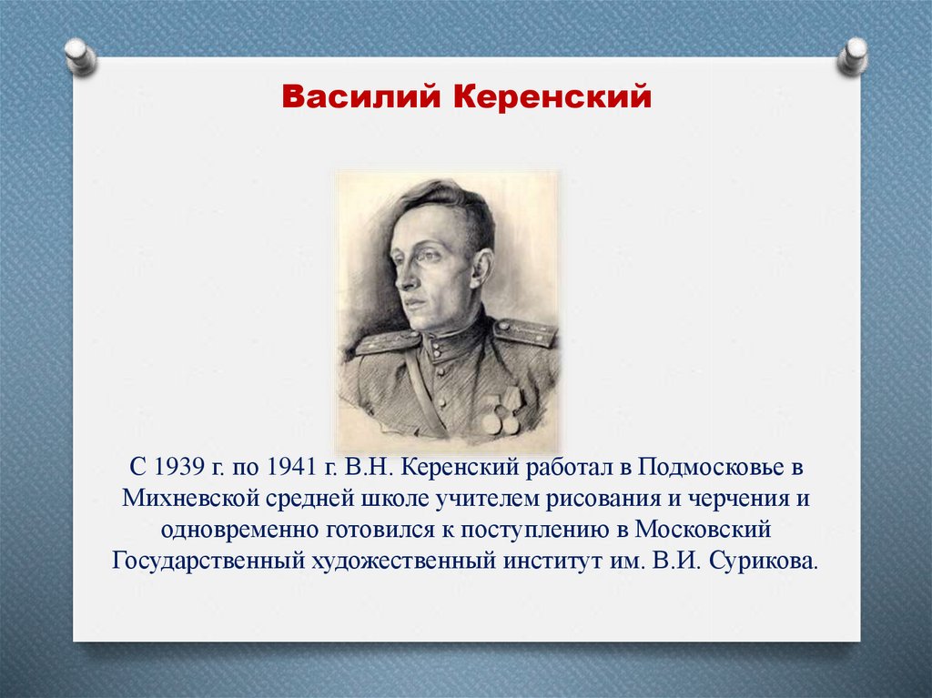 Василий КеренскийС 1939 г. по 1941 г. В.Н. Керенский работал в Подмосковье в