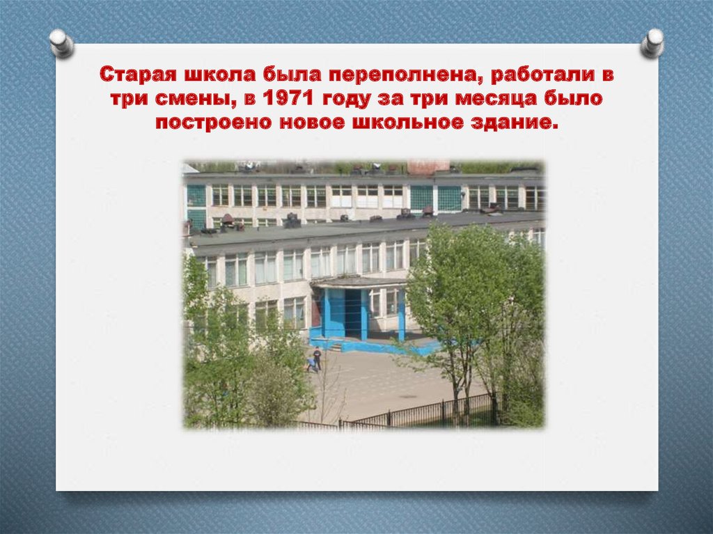 Старая школа была переполнена, работали втри смены, в 1971 году за три месяца было