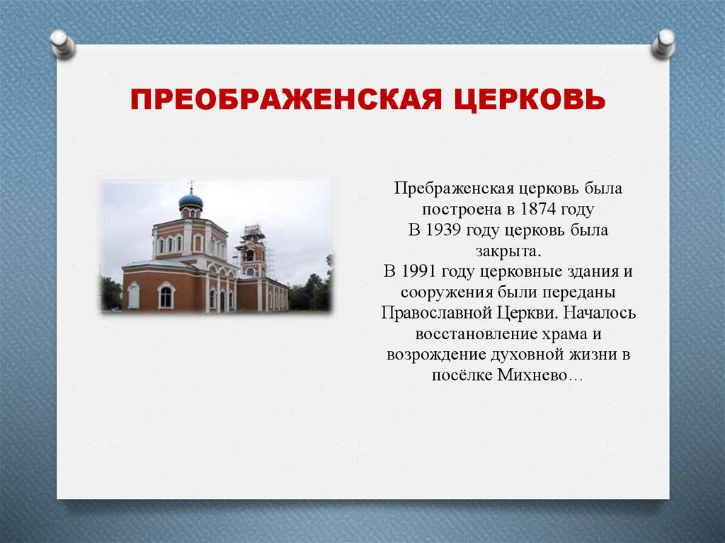 ПРЕОБРАЖЕНСКАЯ ЦЕРКОВЬПребраженская церковь была