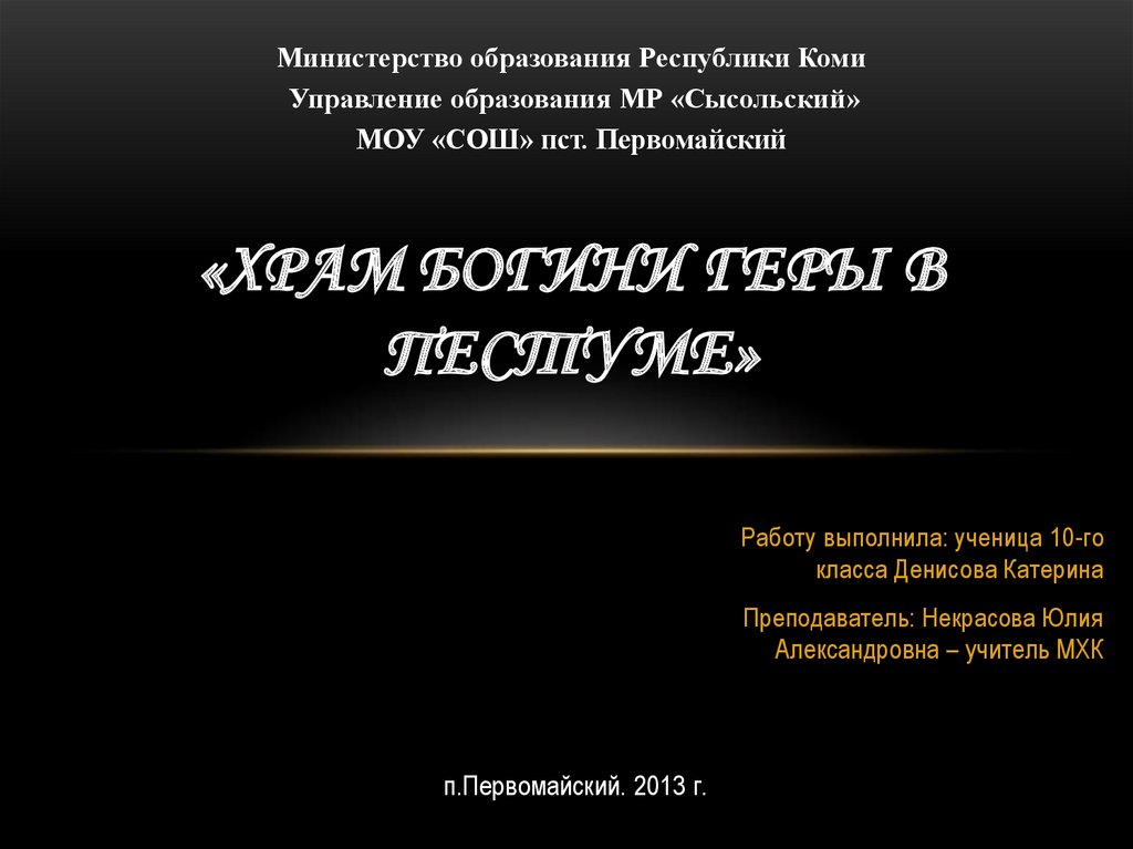 Министерство образования Республики КомиУправление образования МР «Сысольский»