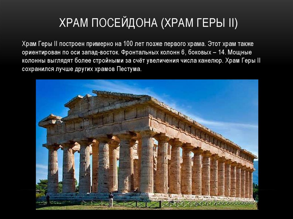 ХРАМ ПОСЕЙДОНА (ХРАМ ГЕРЫ II)Храм Геры II построен примерно на 100 лет позже первого храма. Этот храм также