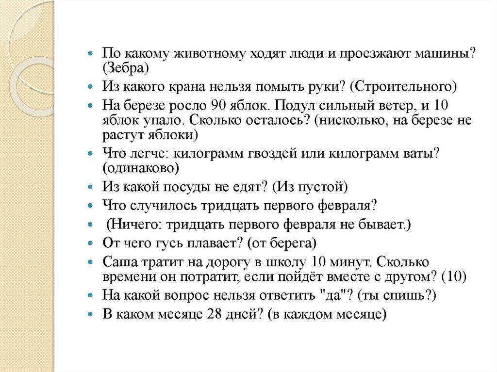 яблок упало. Сколько осталось? (нисколько, на березе не