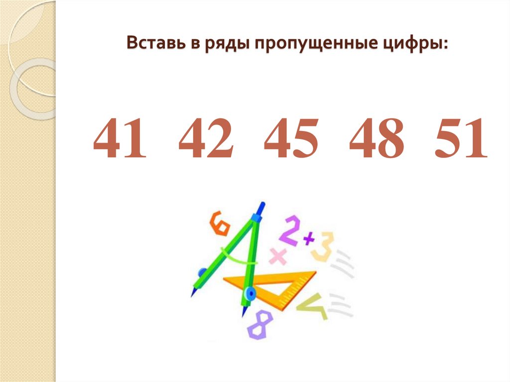 Вставь в ряды пропущенные цифры:41 42 45 48 51