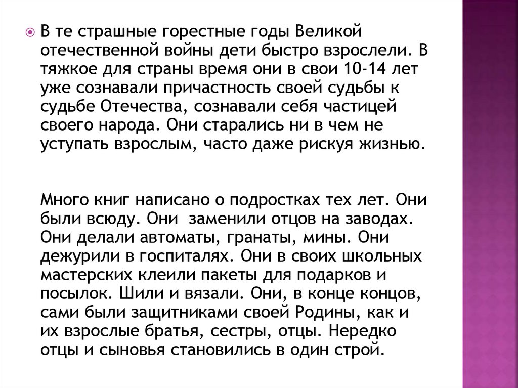В те страшные горестные годы Великойотечественной войны дети быстро взрослели. В