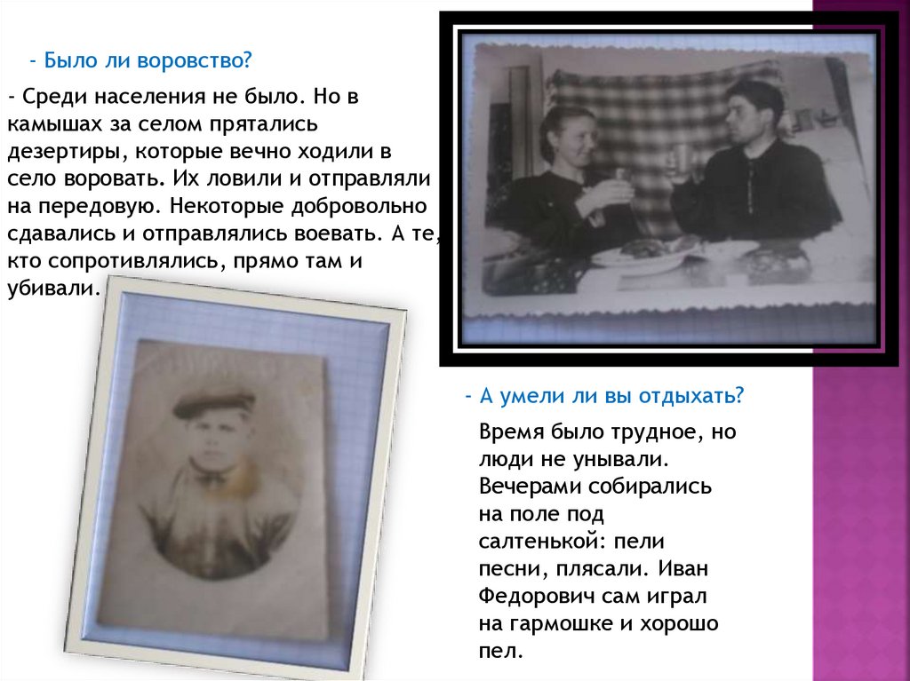 - Было ли воровство?- Среди населения не было. Но в