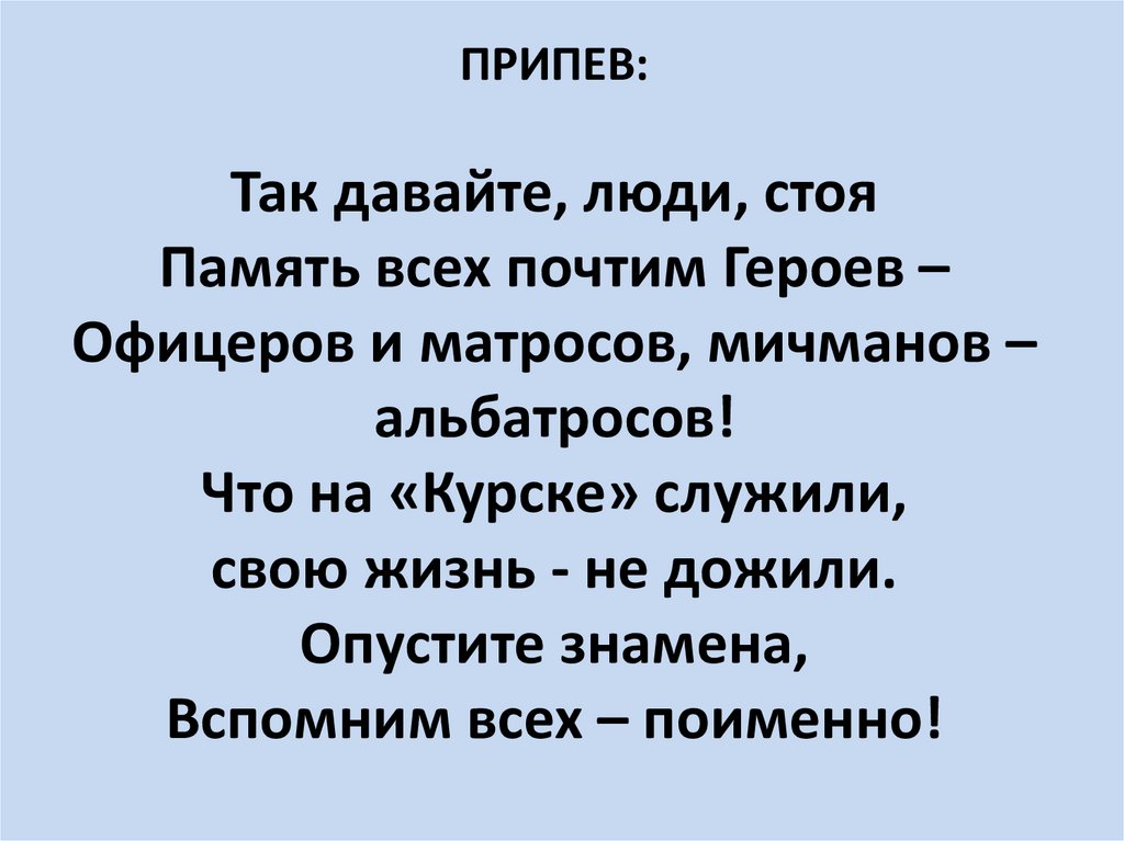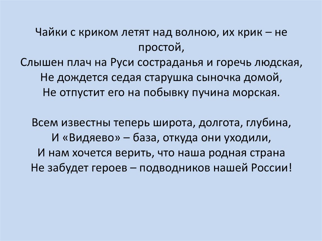 Памяти АПЛ «Курск»Рассекая волну по открытому морю идёт