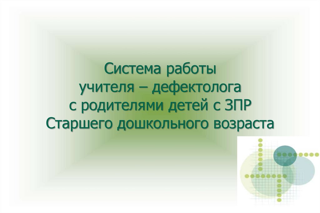 Система работы учителя – дефектолога с родителями детей с ЗПР старшего дошкольного возраста