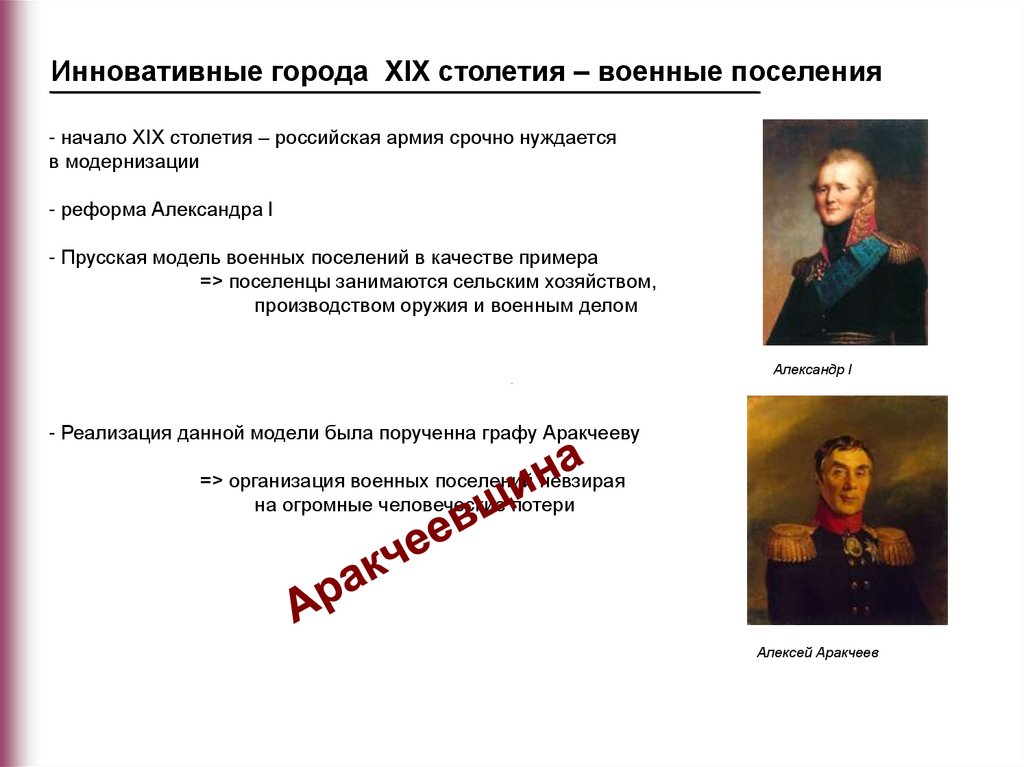 Инновативные города XIX столетия – военные поселения- Опыт Аракчеева в организации инновативных городов