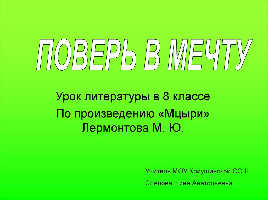 Поверь в мечту. Урок литературы в 8 классе по произведению «Мцыри» Лермонтова М.Ю