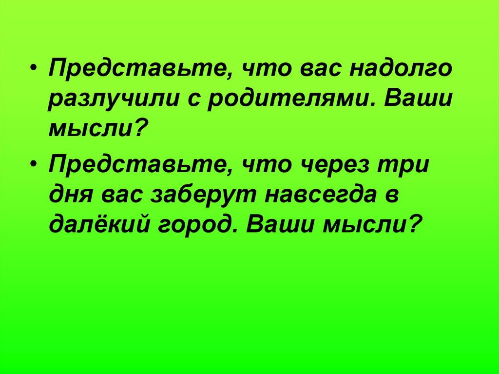 • Представьте, что вас надолгоразлучили с родителями. Ваши