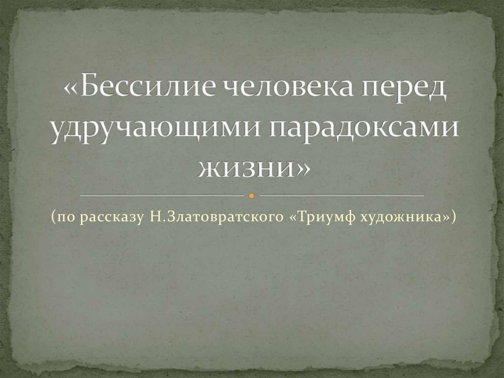 "Бессилие человека перед удручающими парадоксами жизни" (по рассказу Н. Златовратского «Триумф художника»)