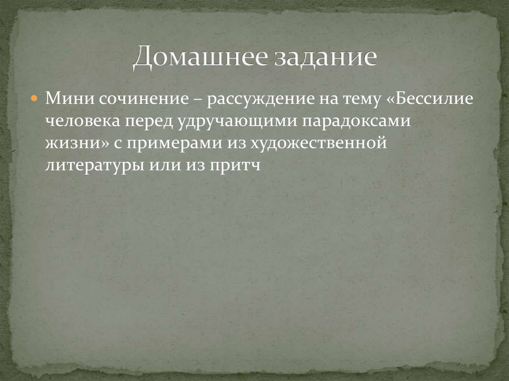 Мини сочинение – рассуждение на тему «Бессилиечеловека перед удручающими парадоксами