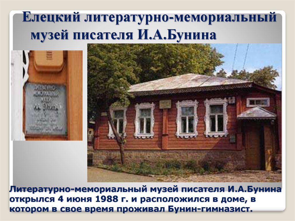 Елецкий литературно-мемориальныймузей писателя И.А.Бунина