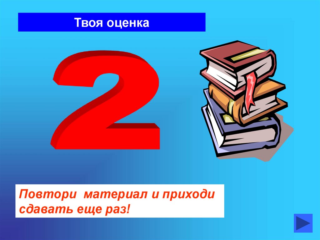 Твоя оценкаПовтори материал и приходи