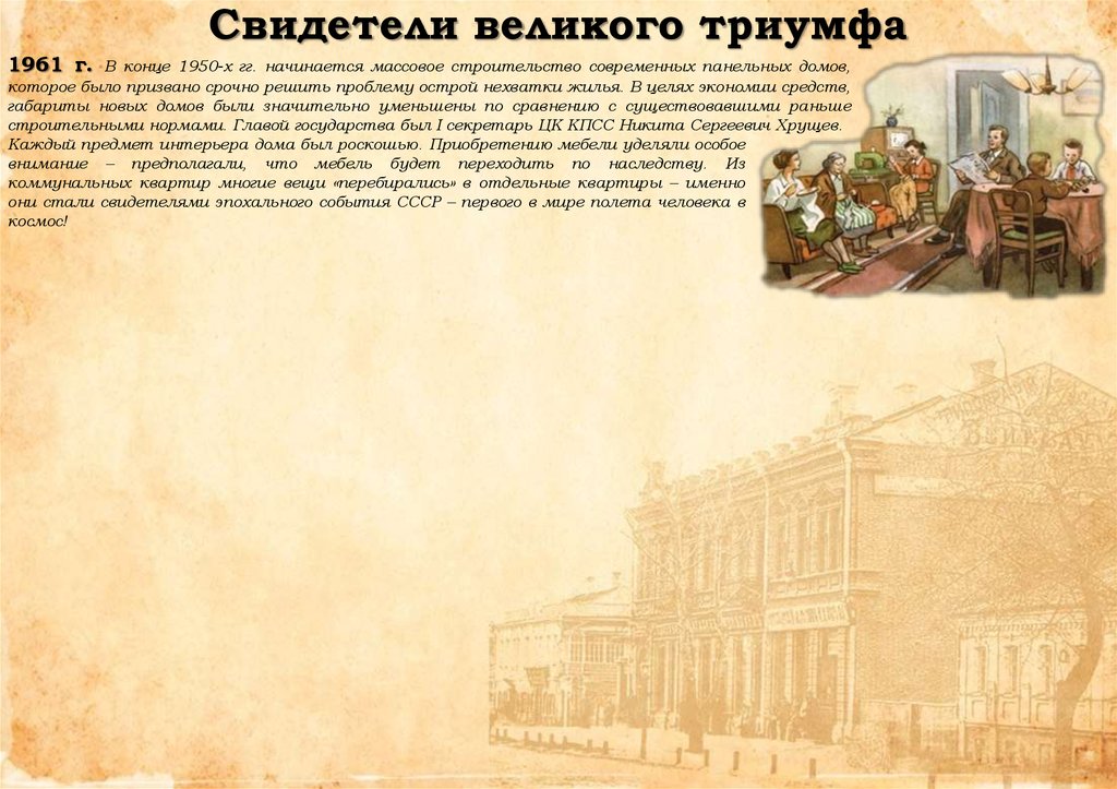 строительными нормами. Главой государства был I секретарь ЦК КПСС Никита Сергеевич Хрущев.