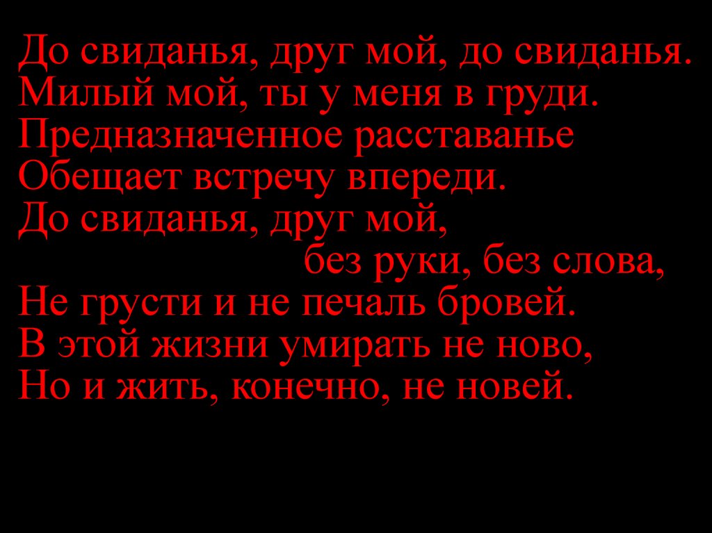 До свиданья, друг мой, до свиданья.Милый мой, ты у меня в груди.