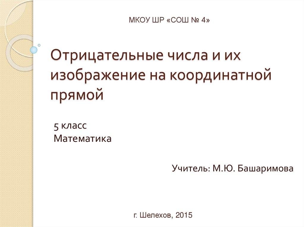 МКОУ ШР «СОШ № 4»Отрицательные числа и их