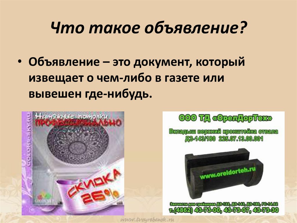 Правила написания объявлений• Слово Объявление (Внимание!) пишется