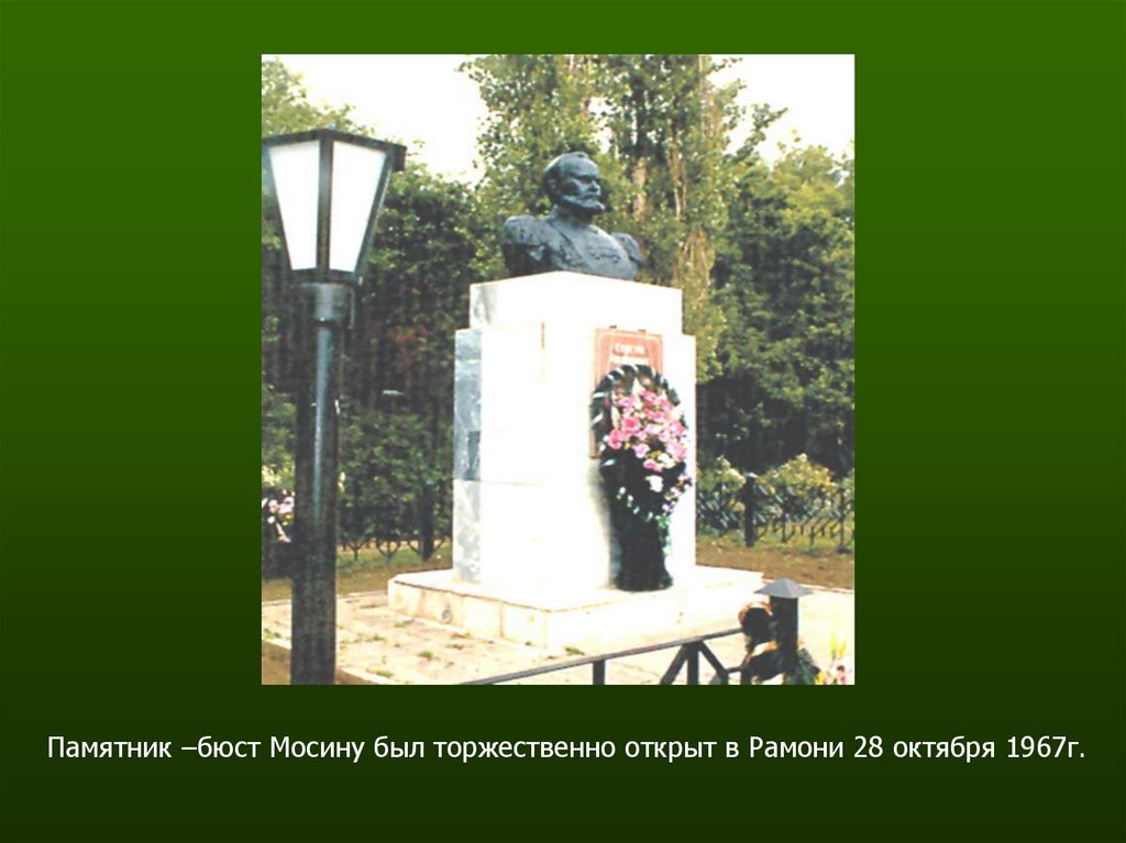 Памятник –бюст Мосину был торжественно открыт в Рамони 28 октября 1967г.6.
