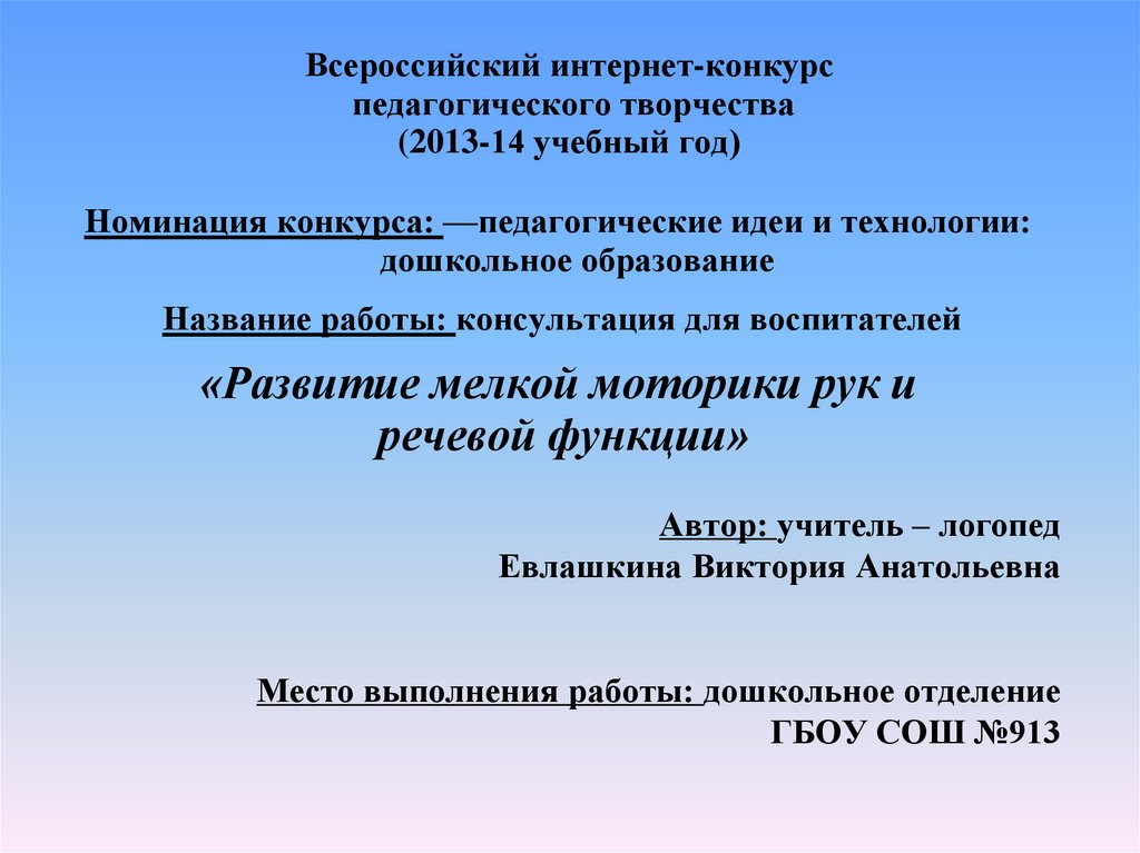 Всероссийский интернет-конкурс педагогического творчества (2013-14 учебный год)