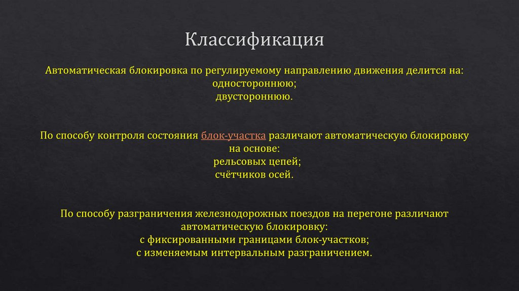 Автоблокировка. Классификация