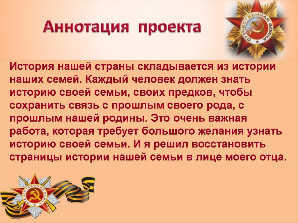 История нашей страны складывается из историинаших семей. Каждый человек должен знать