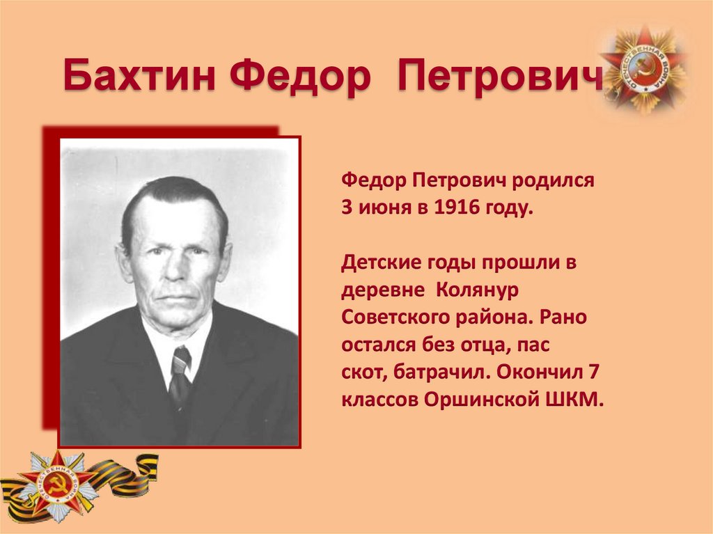 Бахтин Федор ПетровичФедор Петрович родился