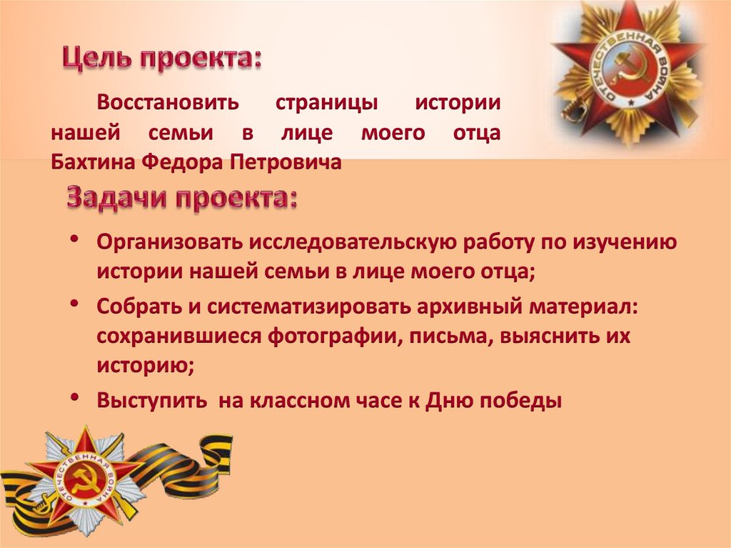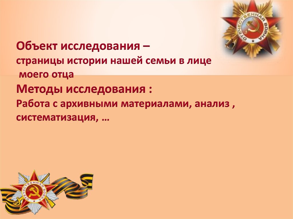 Объект исследования –страницы истории нашей семьи в лице