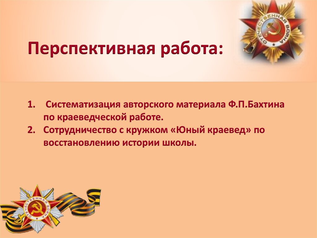 Перспективная работа:1. Систематизация авторского материала Ф.П.Бахтина