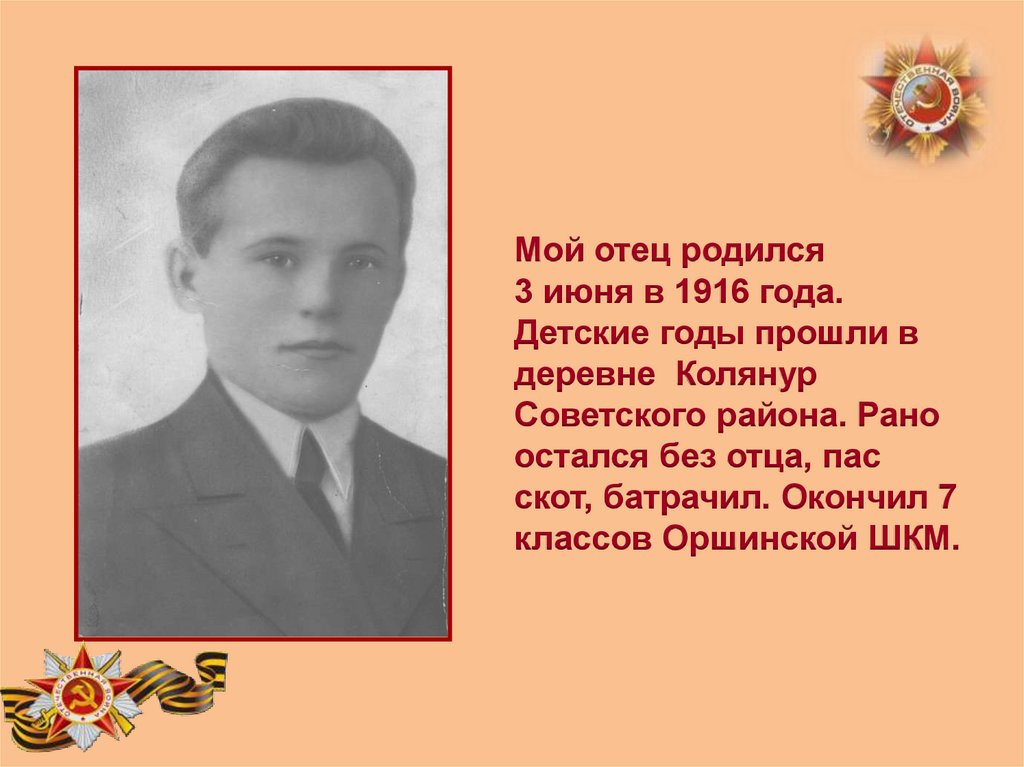 страницы истории нашей семьи в лице моего отца.