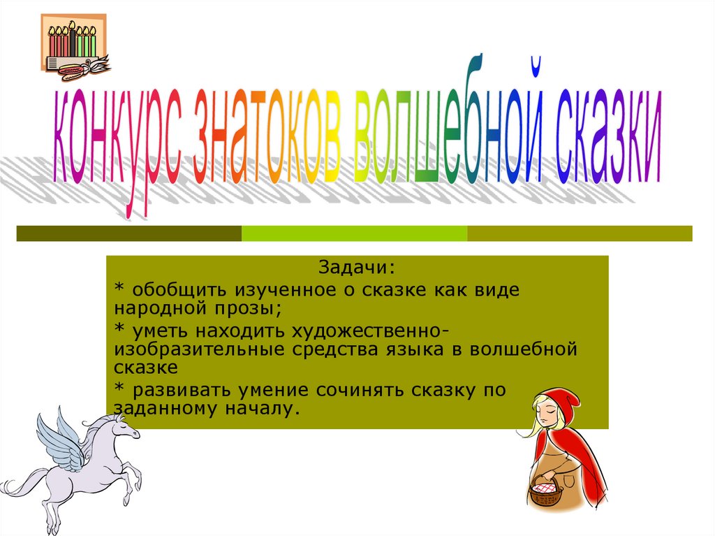 Задачи:* обобщить изученное о сказке как виде