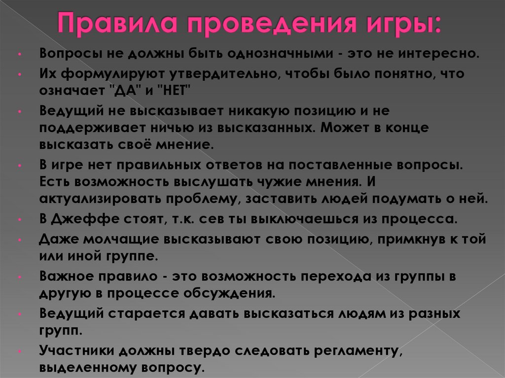 Участники должны твердо следовать регламенту,