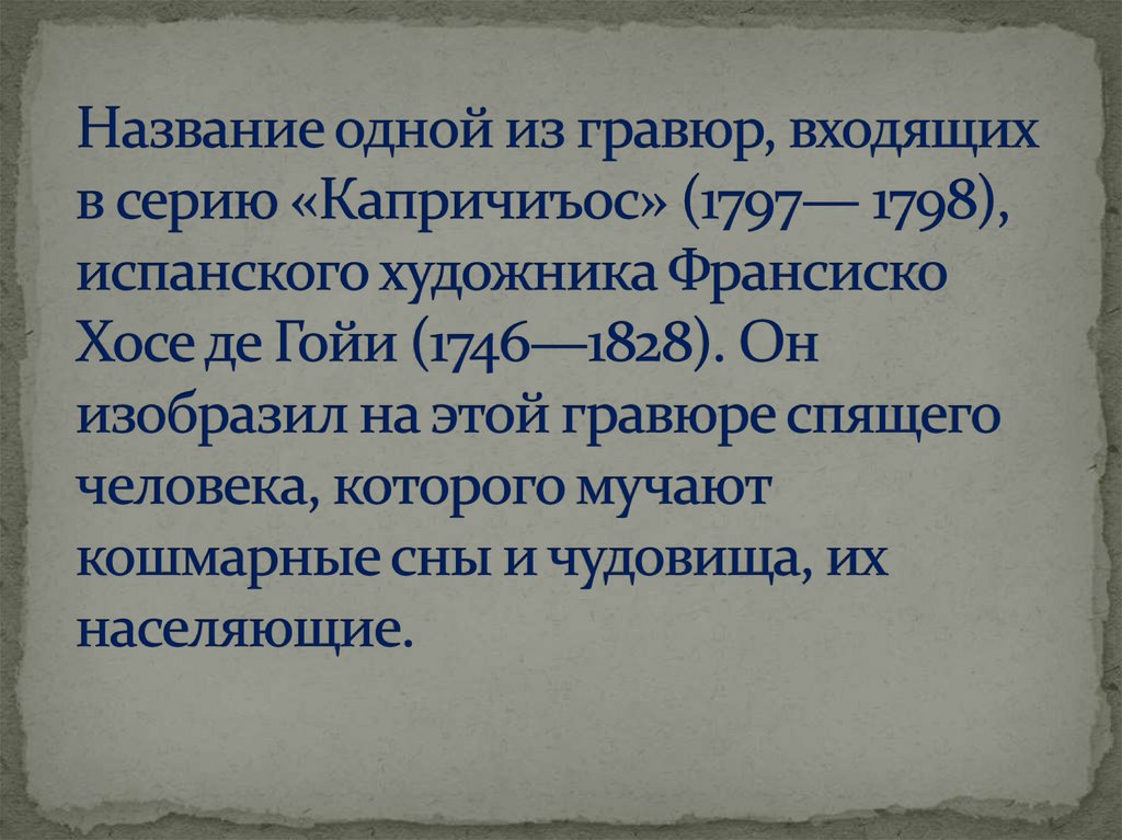 Франсиско Хосе де Гойя «Сон разума рождает чудовищ» 1797