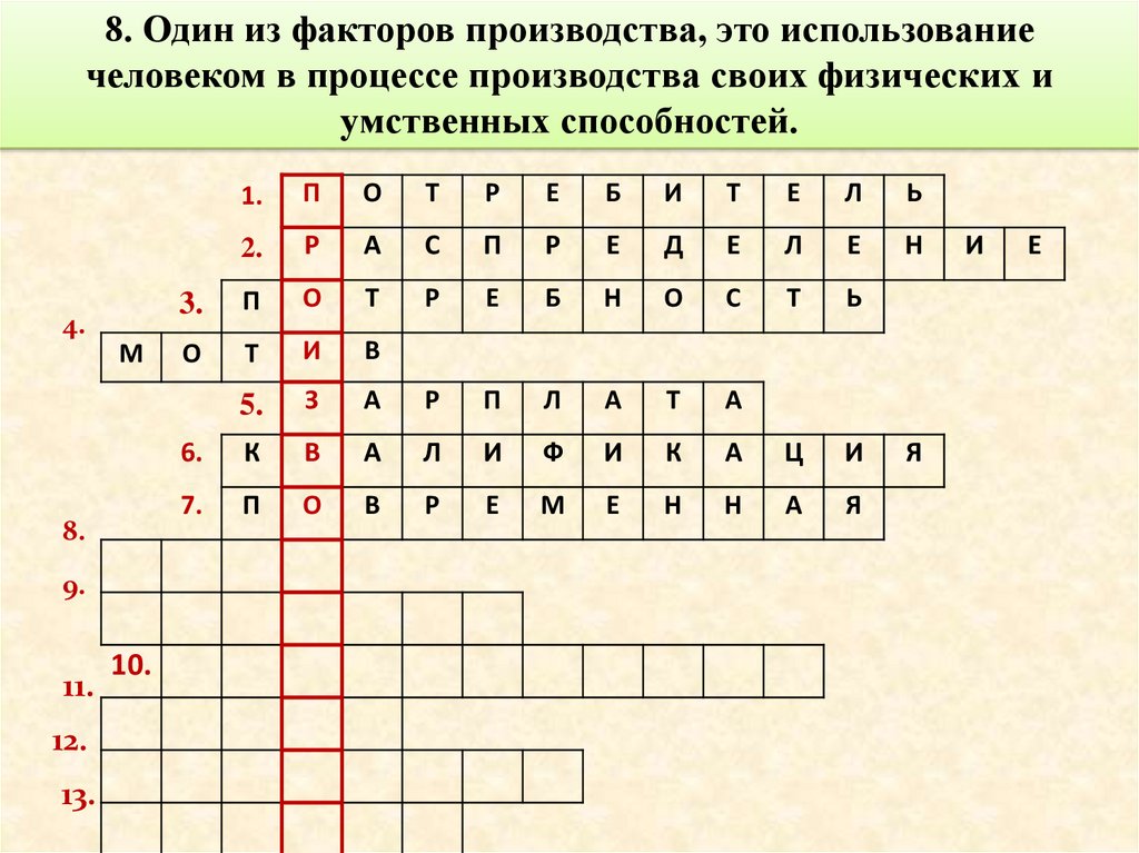 9. Один из факторов производства, это средствапроизводства, произведенные продукты, участвующие в