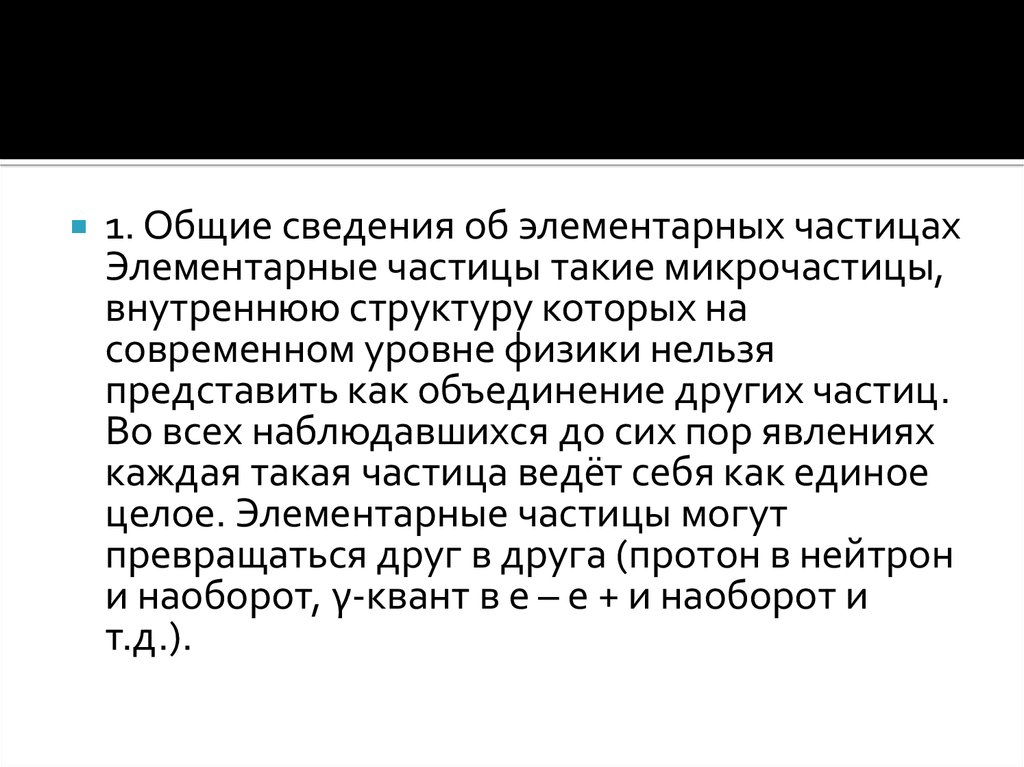 1. Общие сведения об элементарных частицахЭлементарные частицы такие микрочастицы,