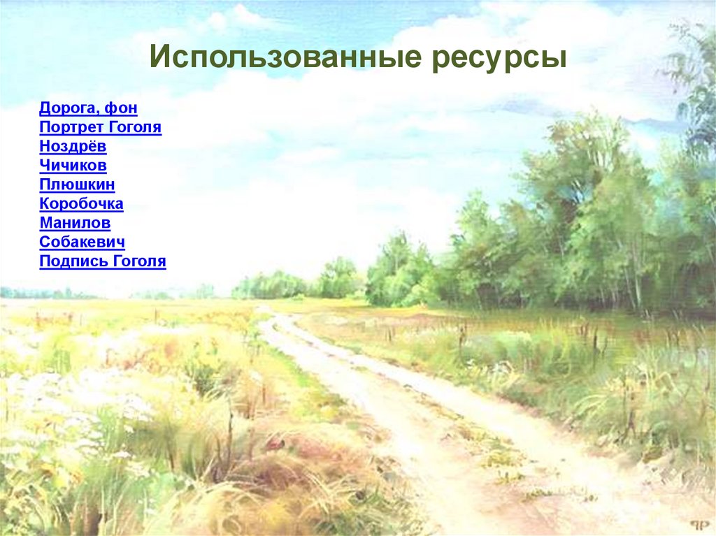Использованные ресурсыДорога, фон