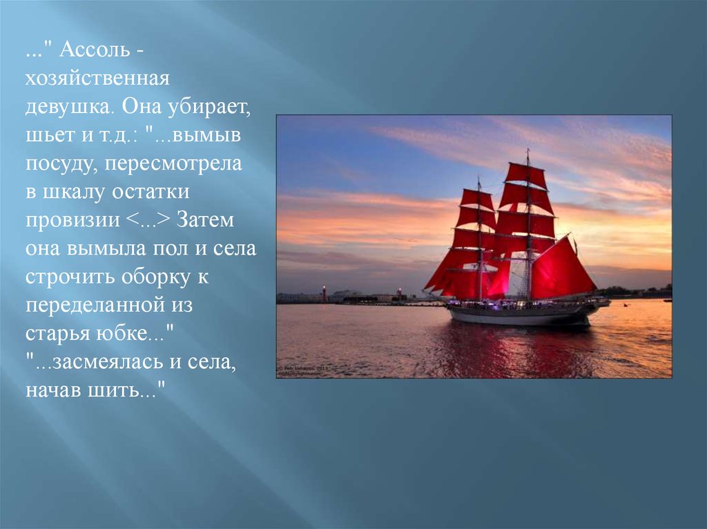 посмотреть лодку..." Ассоль девушка с глубокой душой: "...глаза