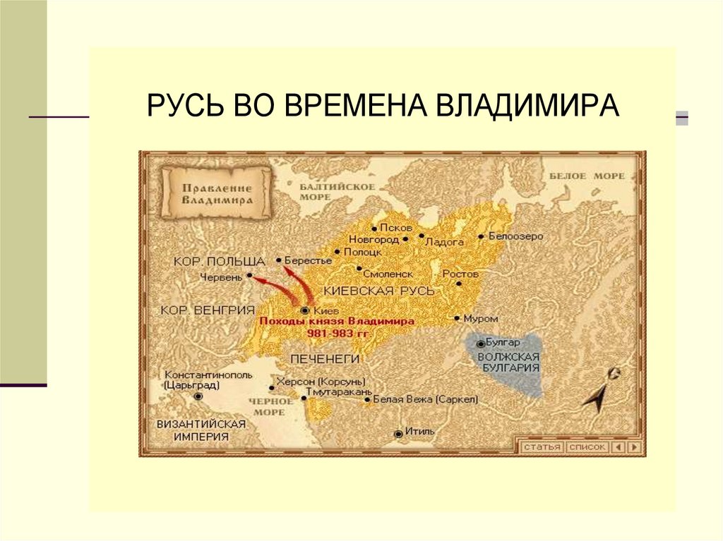 РУСЬ ВО ВРЕМЕНА ВЛАДИМИРА