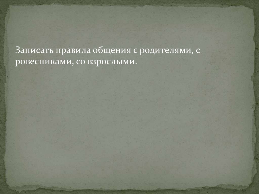 Записать правила общения с родителями, сровесниками, со взрослыми.