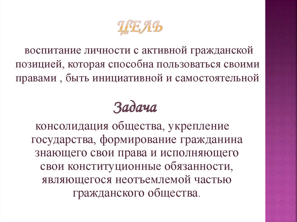 воспитание личности с активной гражданскойпозицией, которая способна пользоваться своими