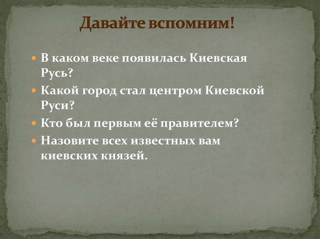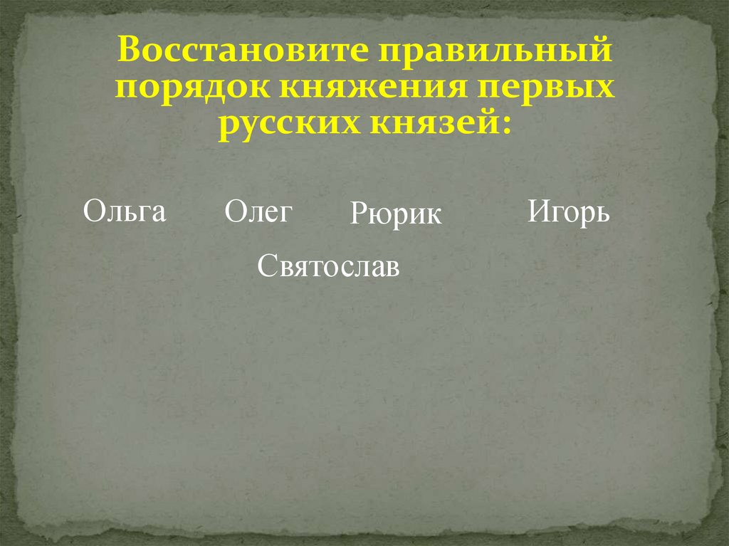 Восстановите правильныйпорядок княжения первых
