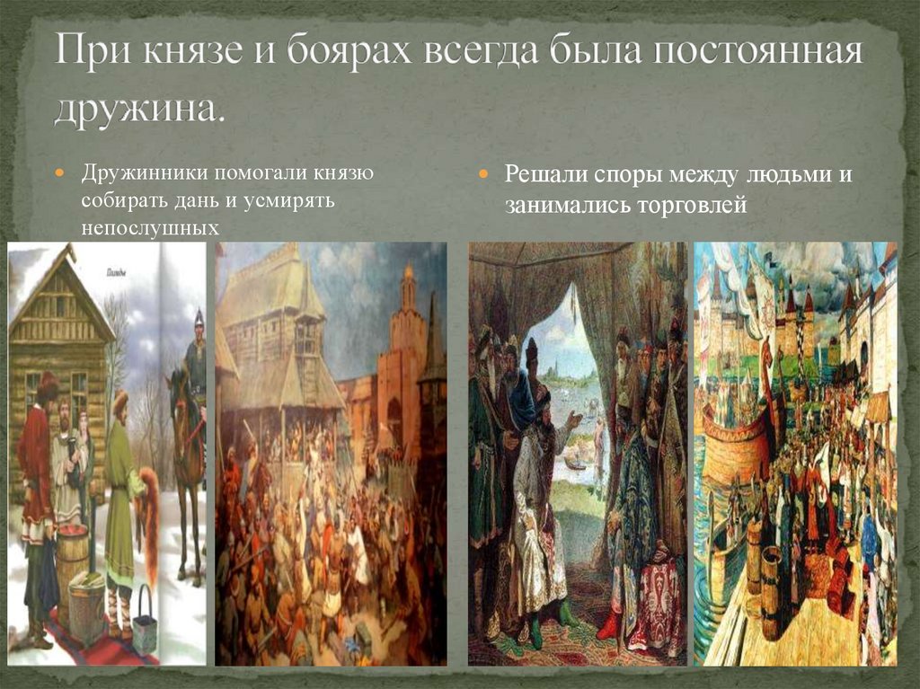 Дружинники помогали князюсобирать дань и усмирять