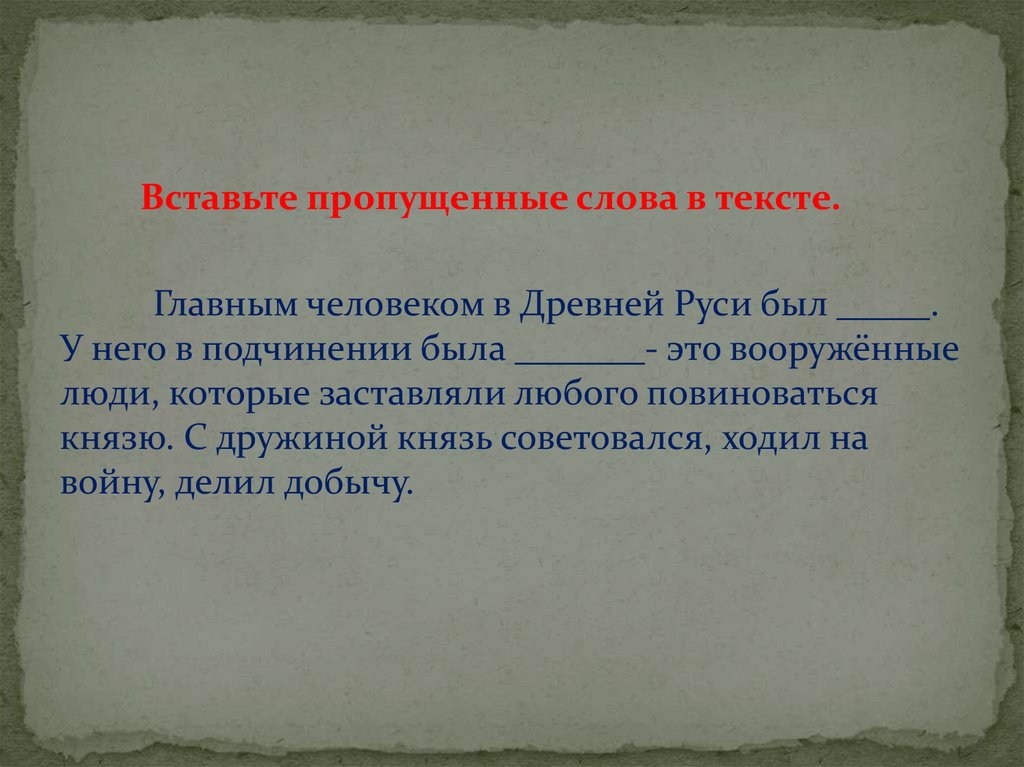 Вставьте пропущенные слова в тексте.Главным человеком в Древней Руси был _____.
