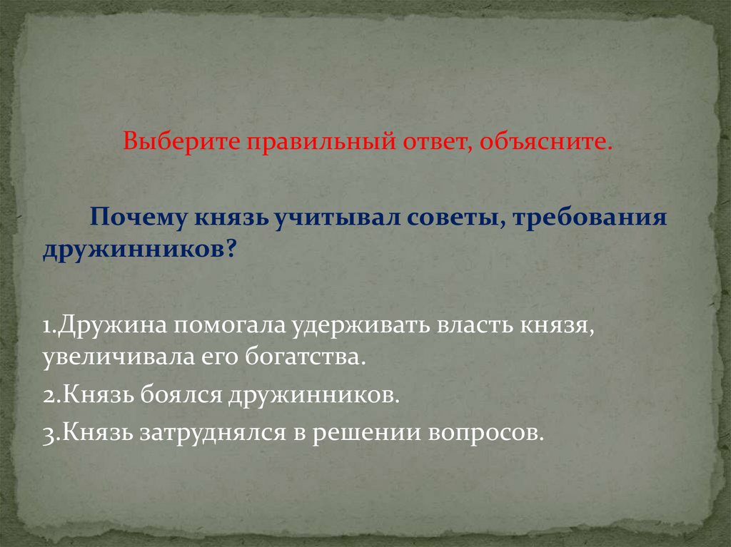2.Князь боялся дружинников.